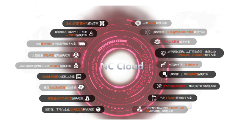 用友NC cloud為客戶提供面向大型企業(yè)集團,制造業(yè)、消費品、建筑、房地產、金融保險等14個行業(yè)大類,68個細分行業(yè),涵蓋數(shù)字營銷、智能制造、財務共享、數(shù)字采購等18大解決方案,幫助企業(yè)全面落地數(shù)字化。
