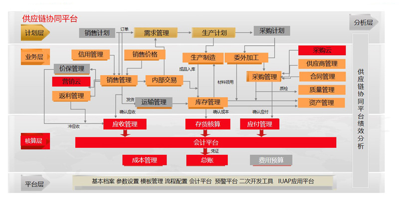 用友NC cloud通過業(yè)務財務一體化的協(xié)同和集成平臺,輕松實現(xiàn)集團企業(yè)內部成員公司之間、組織間、組織內的跨組織銷售、采購、結算、實物調撥等,達到高效協(xié)同、交易準確,成本優(yōu)化、入賬及時的管理目標。